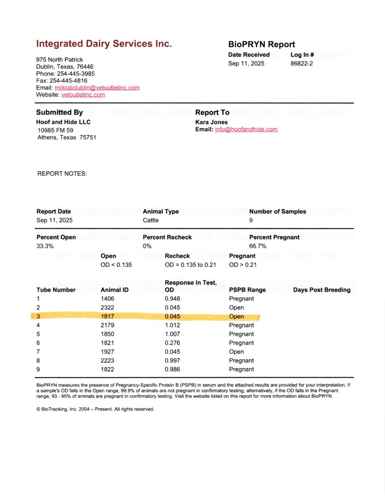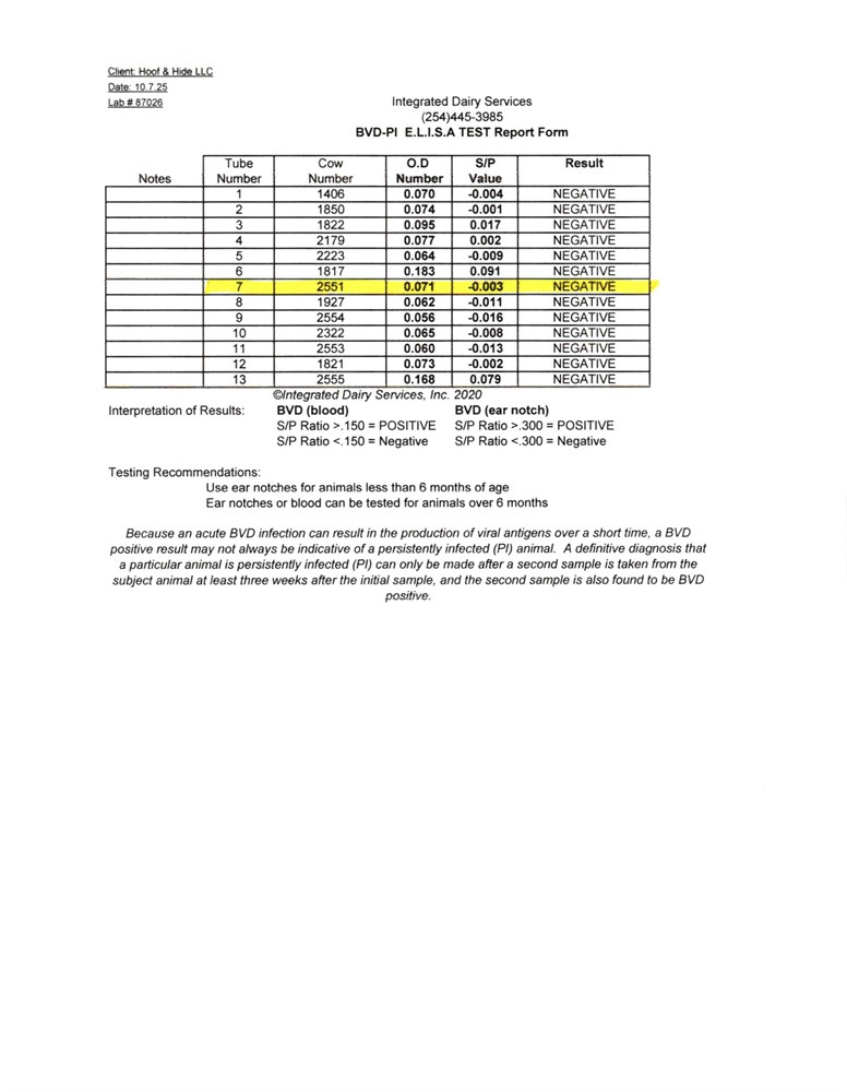 This pair is exclusively grass-fed, eating grasses such as coastal bermuda and behia and cover crops along with hay in the-off season and quality minerals year-round. They have been rotationally grazed, moving daily behind a single strand of hotwire. Both 1817 and 2551 have tested negative for BVD PI.