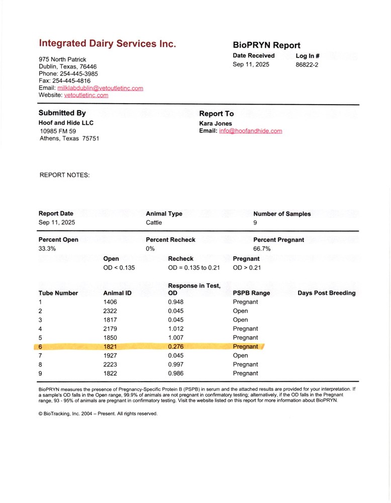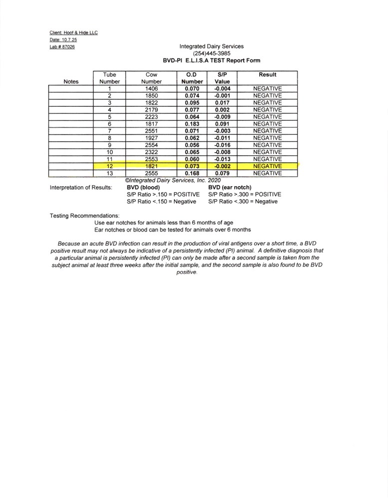 This pair is exclusively grass-fed, eating grasses such as coastal bermuda and behia and cover crops along with hay in the-off season and quality minerals year-round. They have been rotationally grazed, moving daily behind a single strand of hotwire. Both 1821 and 2555 have tested negative for BVD PI.