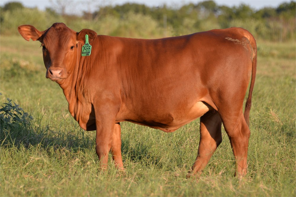 Heifer Calf 2555 was born on May 30th weighing 45 lbs. She has impressed us so far and at 100 days was already 260 lbs. On Oct 7th, she weighed 310 lbs. Her sire is our Herd Bull 1948. You can see information on Bull 1948 by clicking here.