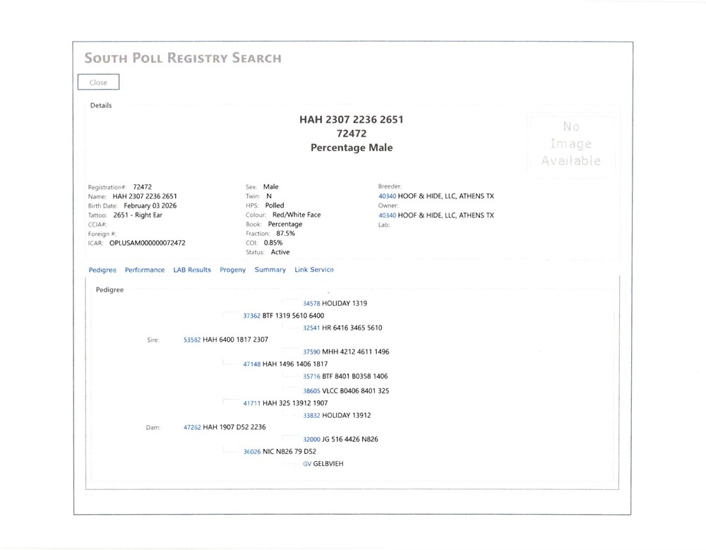 Click Here for Link to Registration Papers for Calf