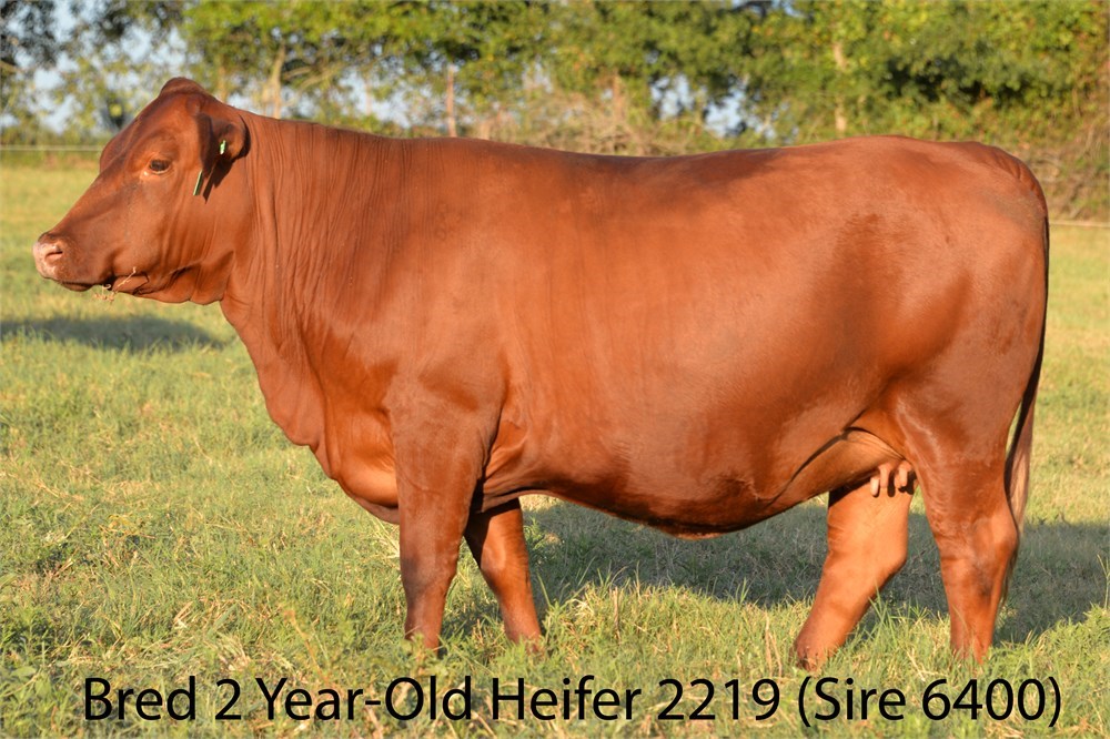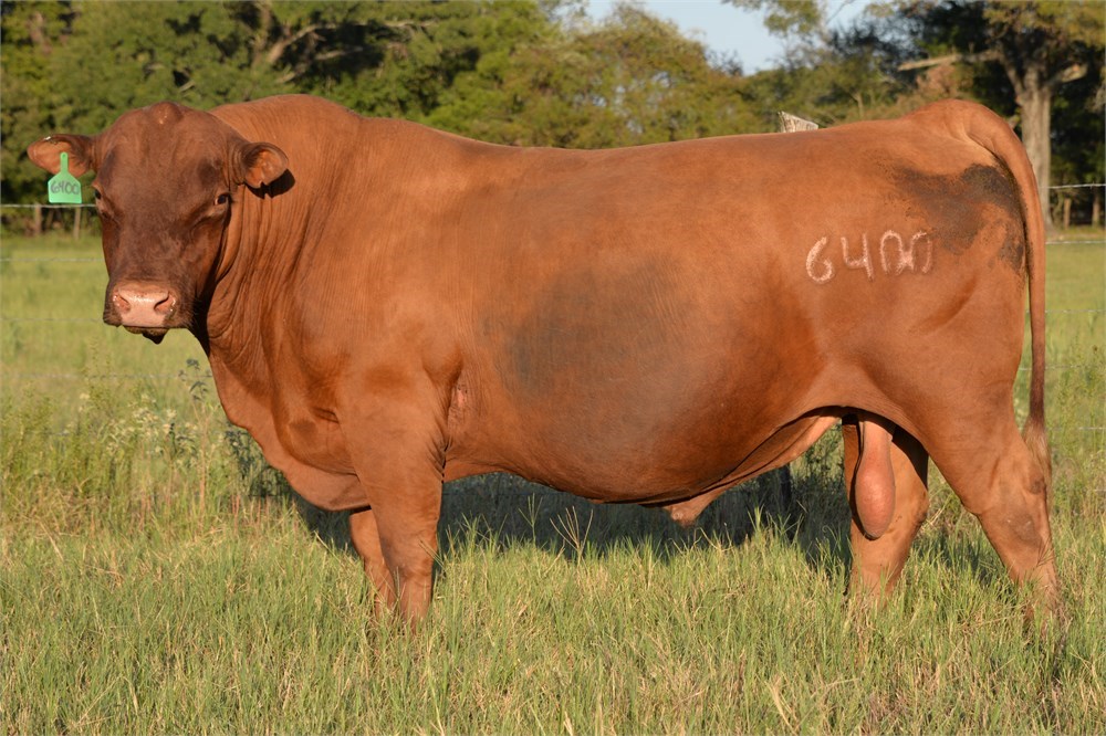 6400 is one of our herd sires that produces some exceptional females. His offspring have the deep gut and spring of ribs that South Poll breeders desire. Descending from 4401 on the dam side and the Romeo/Dandy line on his sire's side, 6400 has the genetics to improve just about anyone's herd. The average birthweight of his offspring on our ranch has been 65 lbs. He himself weighed 66 lbs. at birth. 6400 is standing on our ranch and you are welcome to schedule a time to see him. Pictures of two of his daughters are included for your reference. Call 903-681-4211 or email info@hoofandhide.com to check current semen inventory or to purchase.